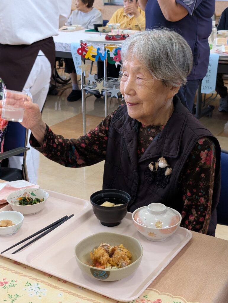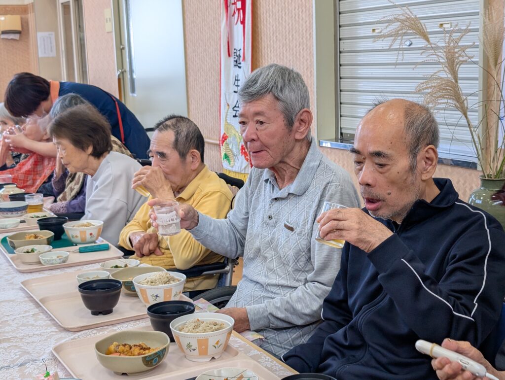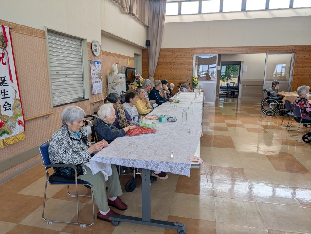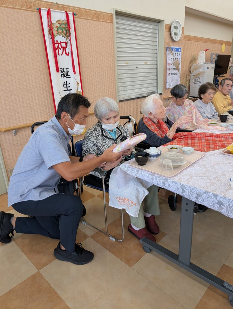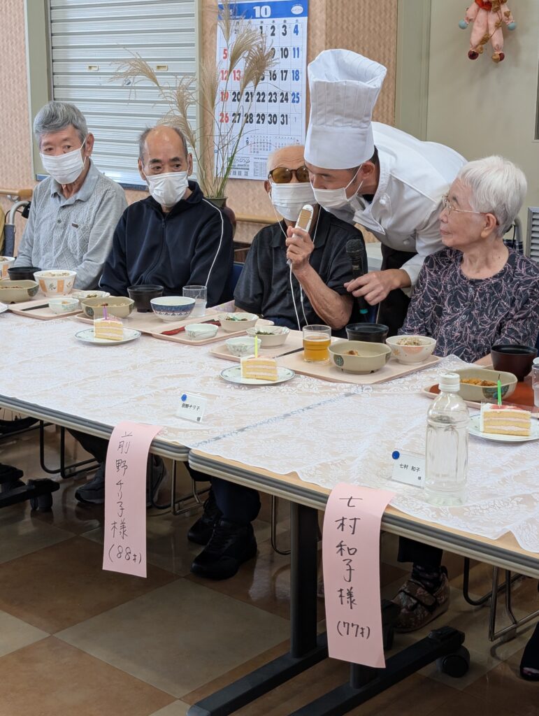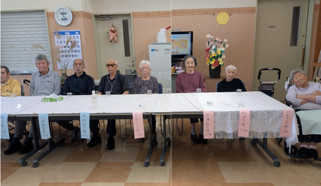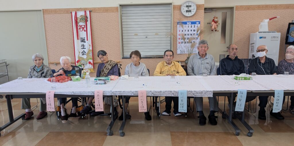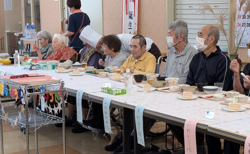 さて、令和7年10月16日(木曜日)に、9月と10月生まれの皆様の合同誕生会を開催いたしました。 9月は新型コロナウイルス感染症の影響により残念ながら開催を見送ったため、今回は9月生まれの方も合わせて、計13名の皆様を盛大にお祝いさせていただきました。