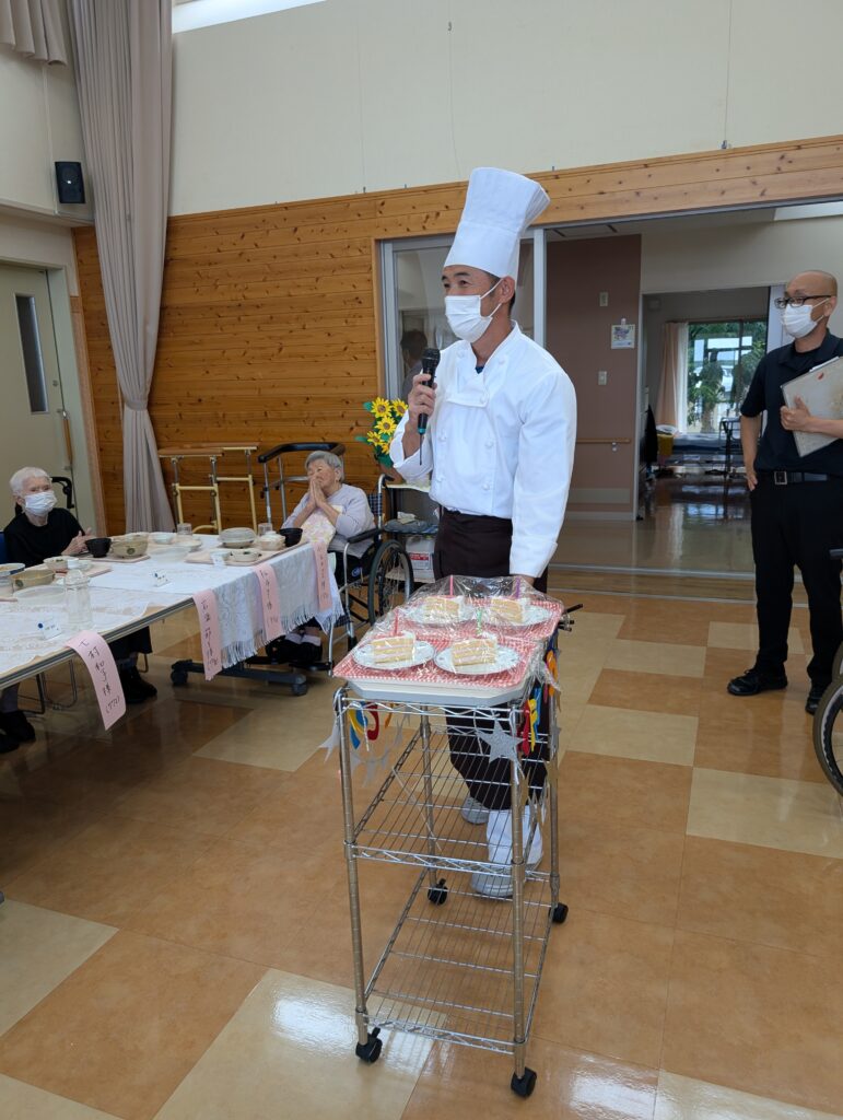 🍰ケーキの登場です。久しぶりの料理長です。皆さん覚えていますか~?