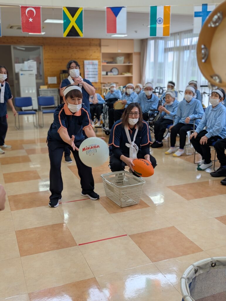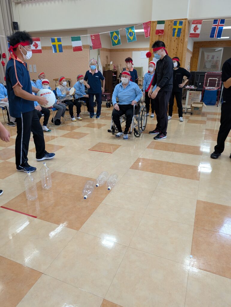 それぞれの競技に職員も参加しました。利用者の皆さんと一緒に楽しむことが出来ました。