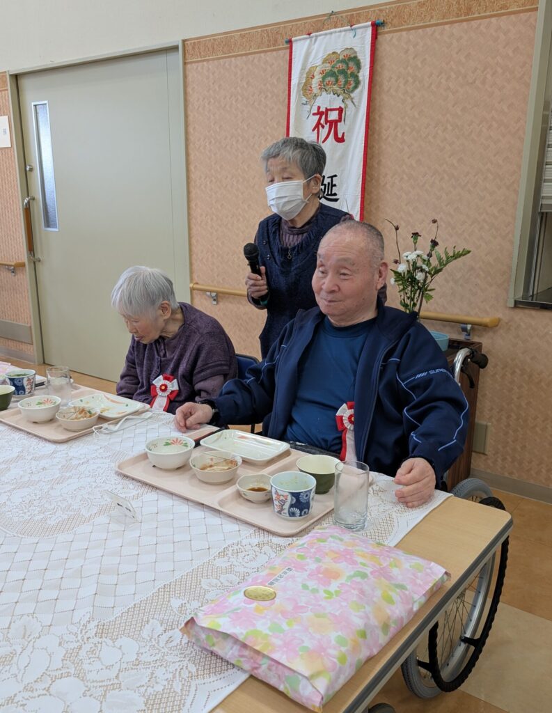 さて、去る11月13日(木)、11月生まれの誕生会を開催いたしました。今月はお二人の方がお祝いを受けられました。お二方とも、穏やかな笑顔でお祝いのひとときを過ごされました。