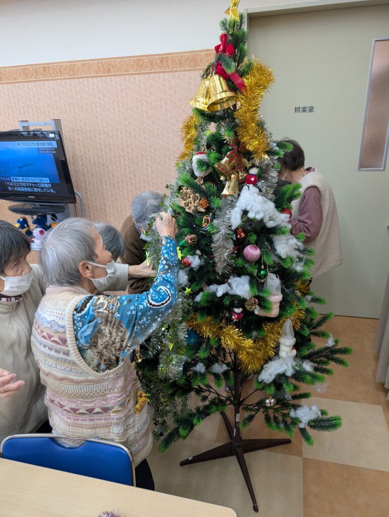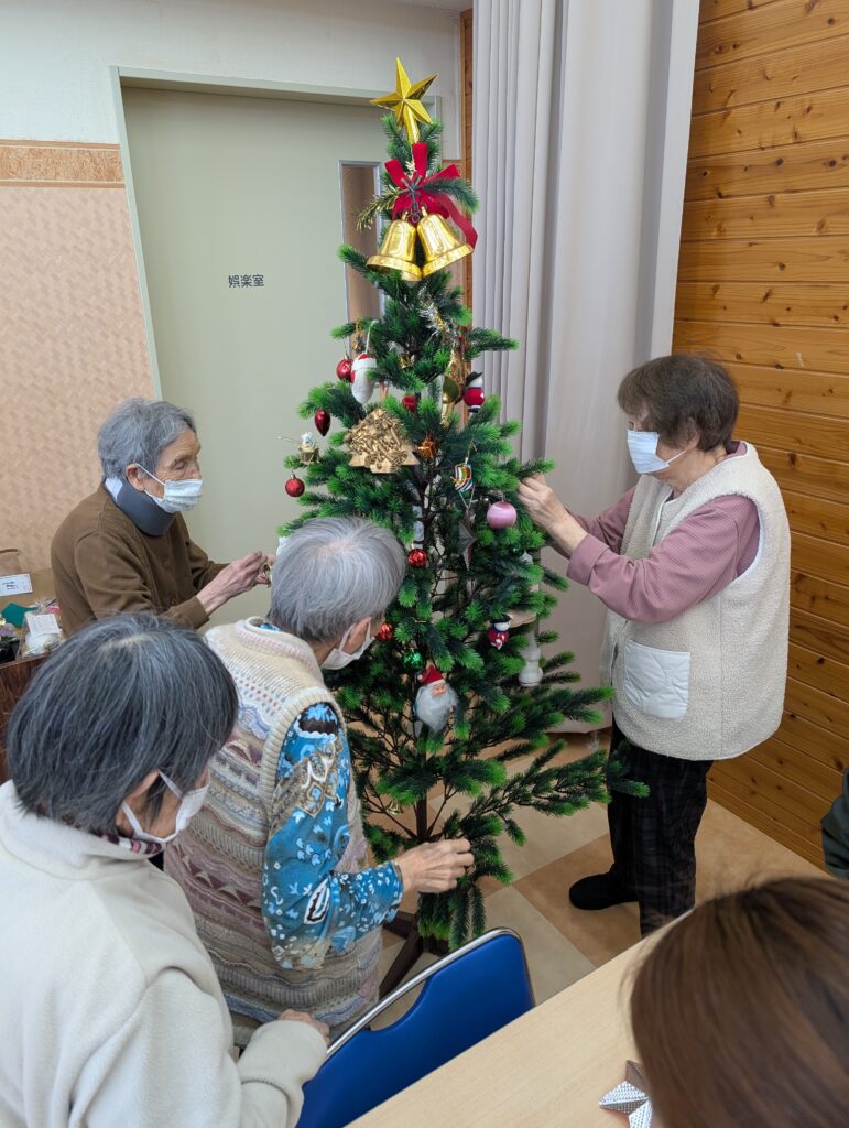 クリスマスツリーを飾りつけてみんなでケーキを頂きます。