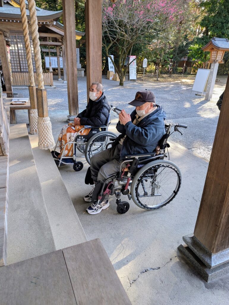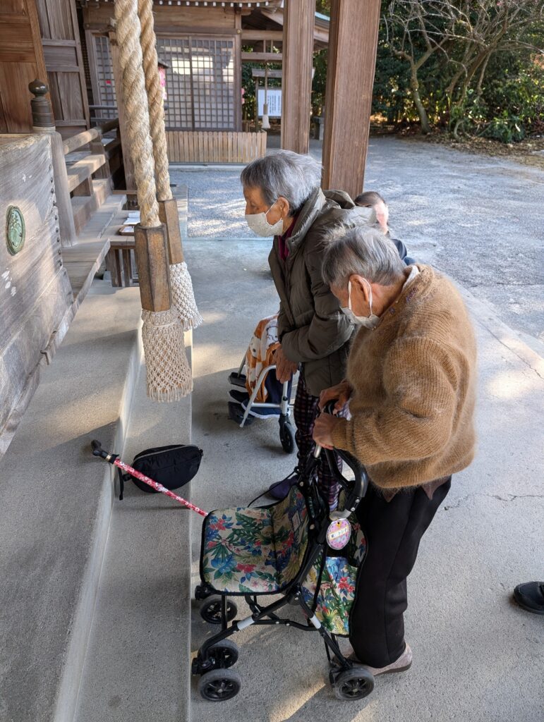 さて、望峰園では今月21日に毎年恒例の初詣に行きました。市内の神柱神社に希望者を募り行きました。皆さん楽しみにされており元気にお参りされました。