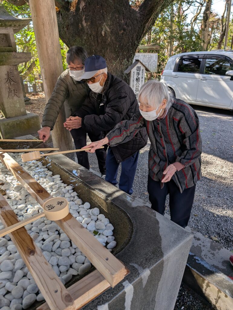 参拝の後は、おみくじを引いたり、境内で日向ぼっこをしたり思い思いにすごされていました。