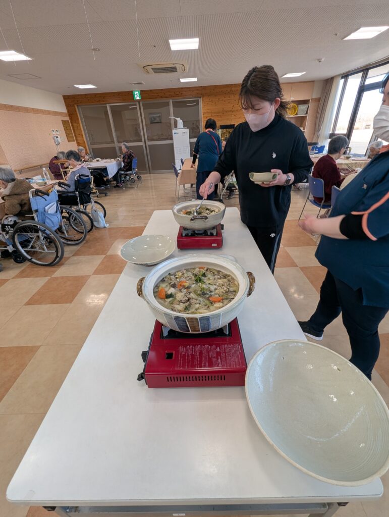 ちゃんこ鍋はおかわり自由です。2杯、3杯とおかわりされていました!「あったかくておいしいね」というお言葉を頂きました。