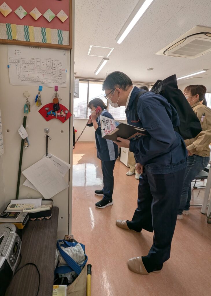さて、去る3月5日に総合防災訓練を南消防署の職員の方々の立会いの下行いました。年2回の訓練が義務付けられています。皆さん真剣に訓練に参加されました。