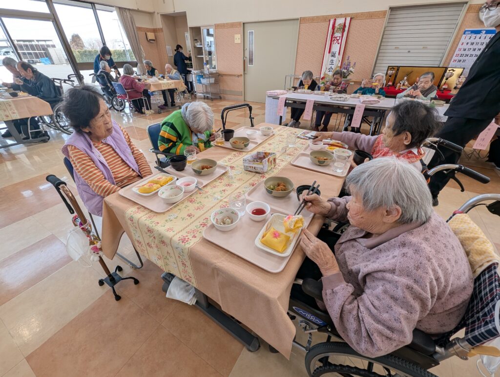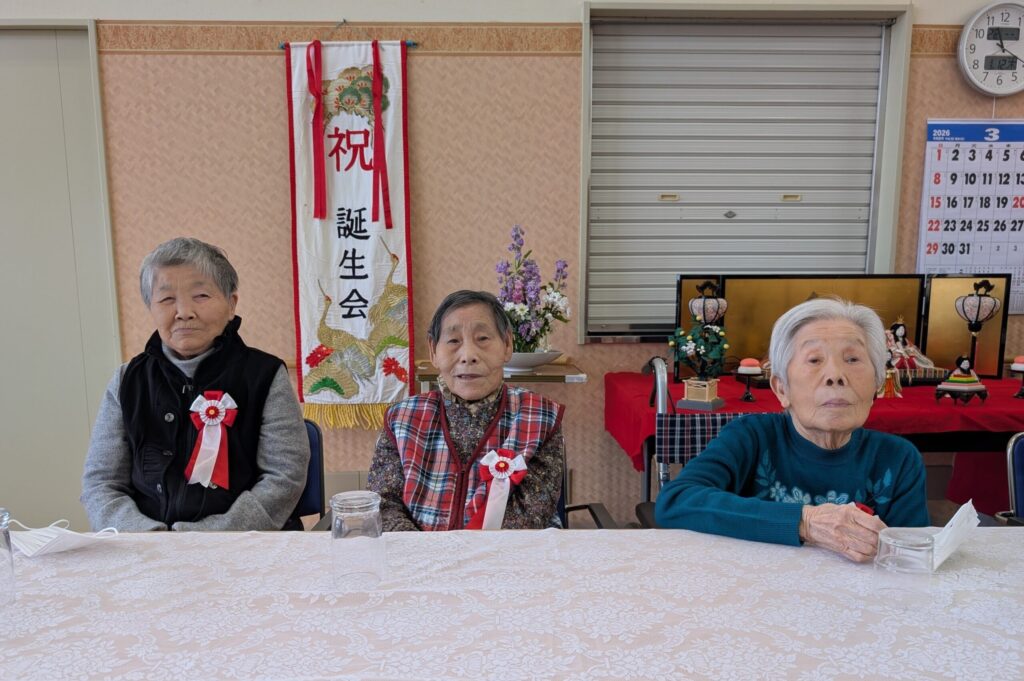 暖かい日差しが差し込み和やかな雰囲気の誕生会となりました。誕生者の皆さんも笑顔が絶えずとても嬉しそうでした。