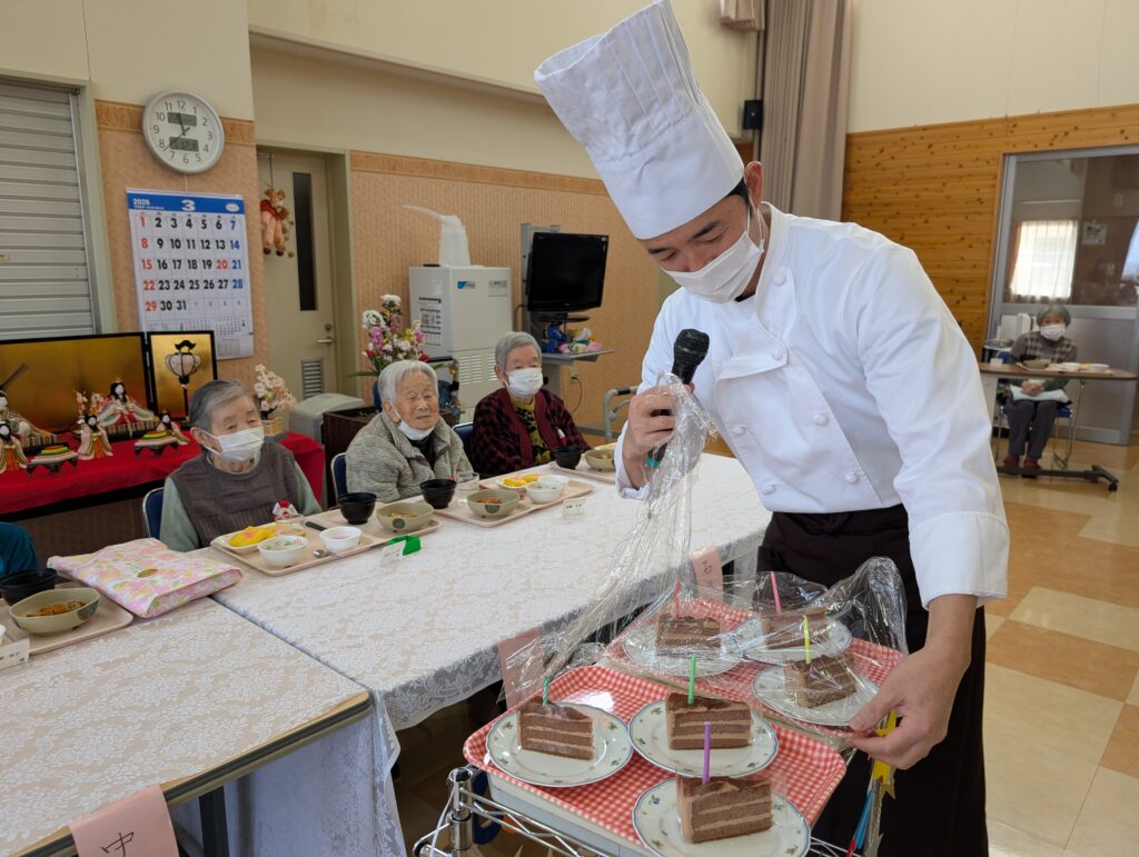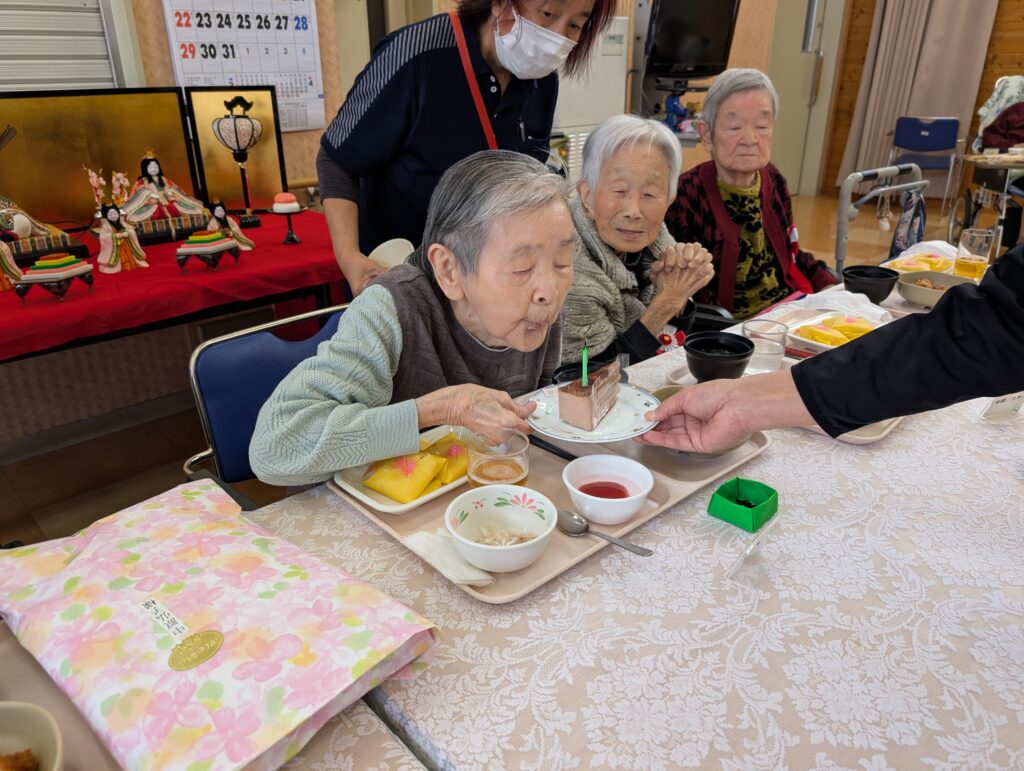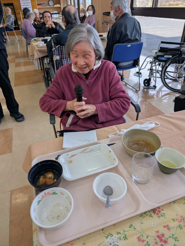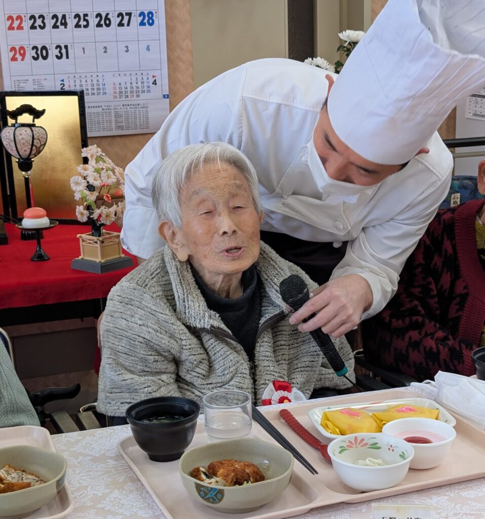さて、望峰園では3月の誕生会を12日に行いました。今月は6名の方々が皆さんのお祝いを受けられました。園内最高齢97歳の方もおられ、今日の誕生会を楽しみにされていました。
