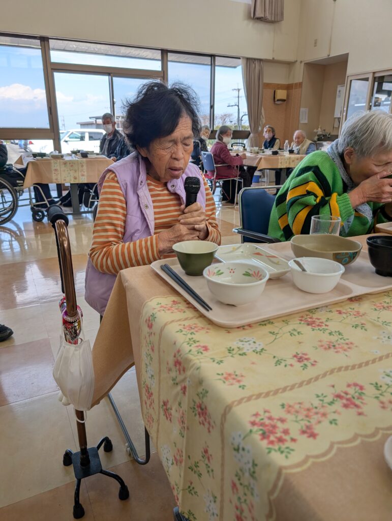 会食のあとは皆さんの恒例お祝いの歌を披露されます。初めて参加される方もおられ元気な歌声を聞かせて頂きました!
