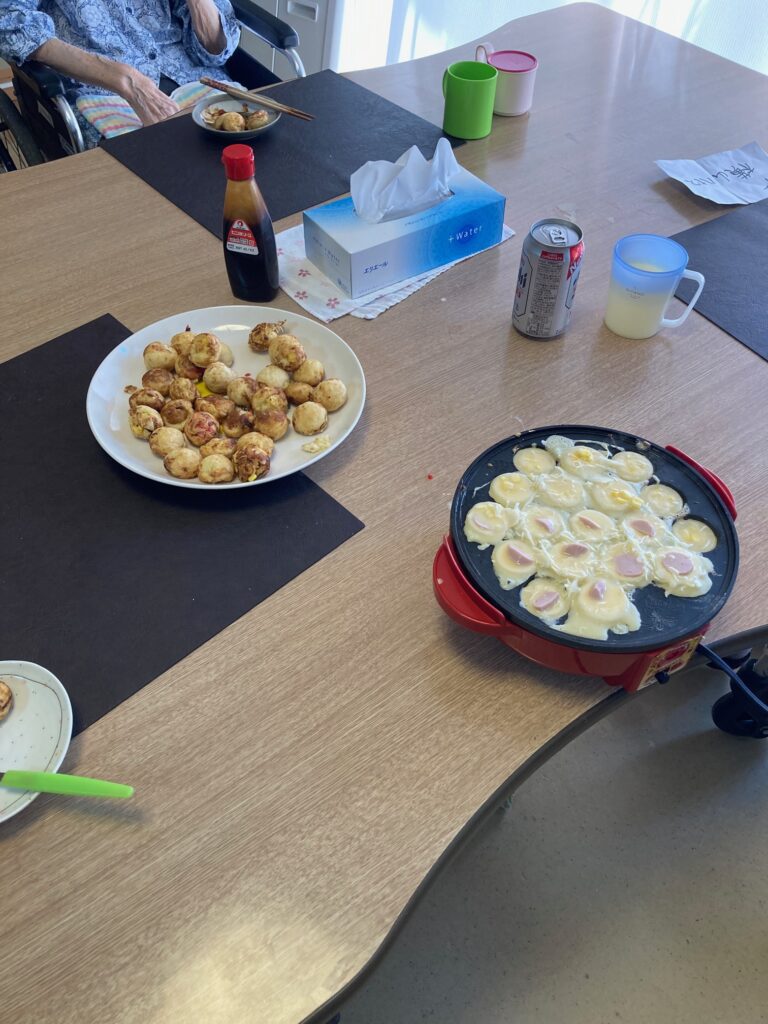 ユニット企画にて昼食にて、たこ焼きを行いました。