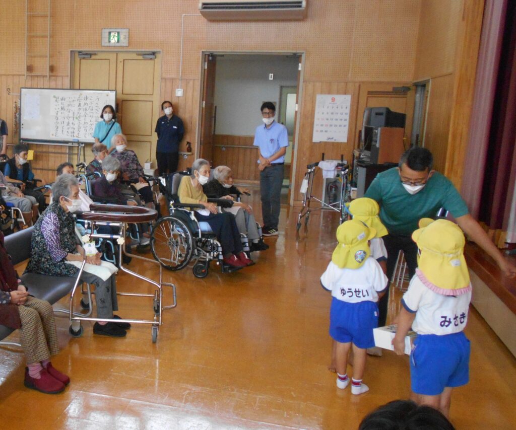 103歳の最高齢者に紅白まんじゅうなど利用者分粗品を送りました。おめでとう